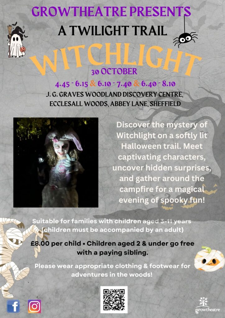This Halloween, step into Ecclesall Woods for A Twilight Trail: Witchlight, a brand-new interactive family event from Growtheatre. On Thursday 30 October, families can enjoy a softly lit woodland trail filled with enchanting characters, hidden surprises, and atmospheric fun. The adventure ends with a cosy campfire, where marshmallows and stories await. With limited places available, booking is essential.