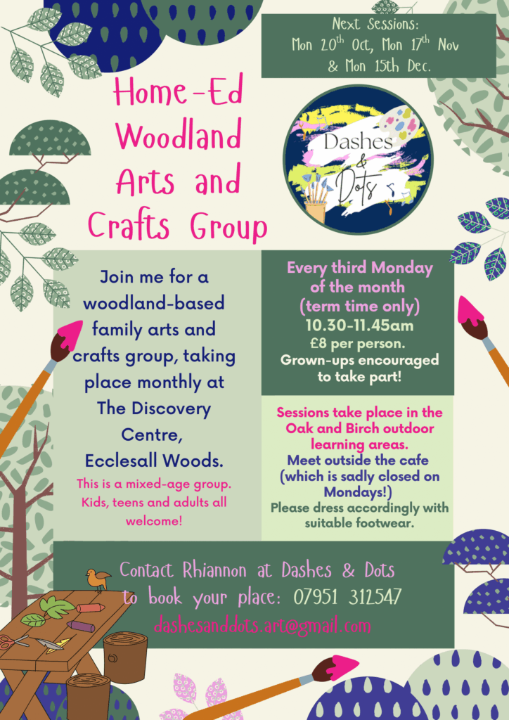 Join Dashes and Dots for woodland based family arts and crafts group, taking place monthly.